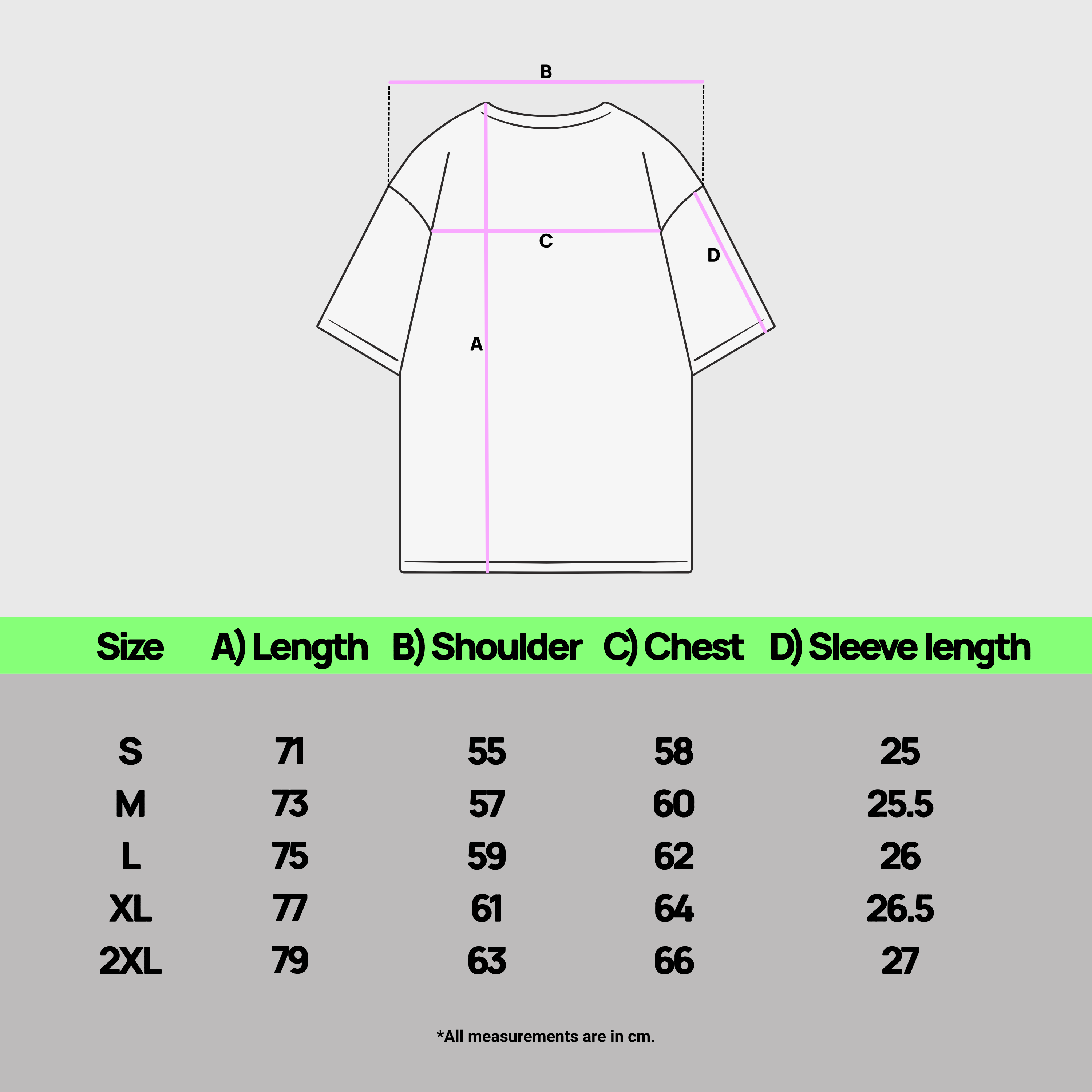 Unsere Größenhilfe dient dir als Orientierung, um die passende Größe zu finden. Die Klamotten sind true to size