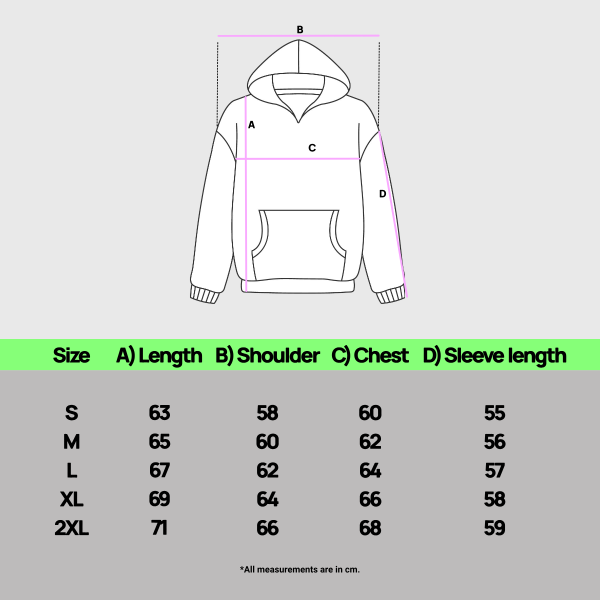 Unsere Größenhilfe dient dir als Orientierung, um die passende Größe zu finden. Die Klamotten sind true to size