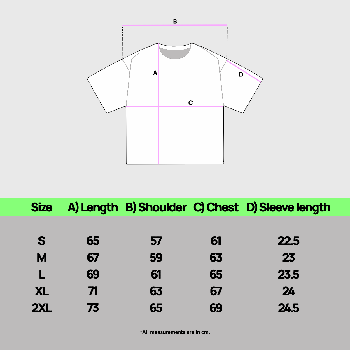Unsere Größenhilfe dient dir als Orientierung, um die passende Größe zu finden. Die Klamotten sind true to size